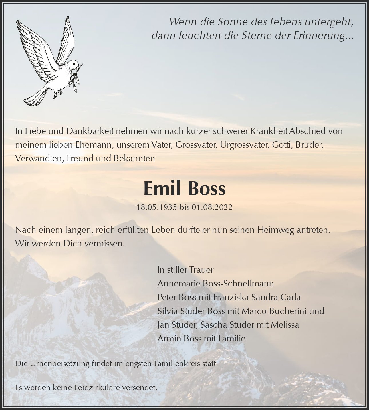 In Liebe und Dankbarkeit nehmen wir nach kurzer schwerer Krankheit Abschied von meinem lieben Ehemann, unserem Vater, Grossvater, Urgrossvater, Götti, Bruder, Verwandten, Freund und Bekannten